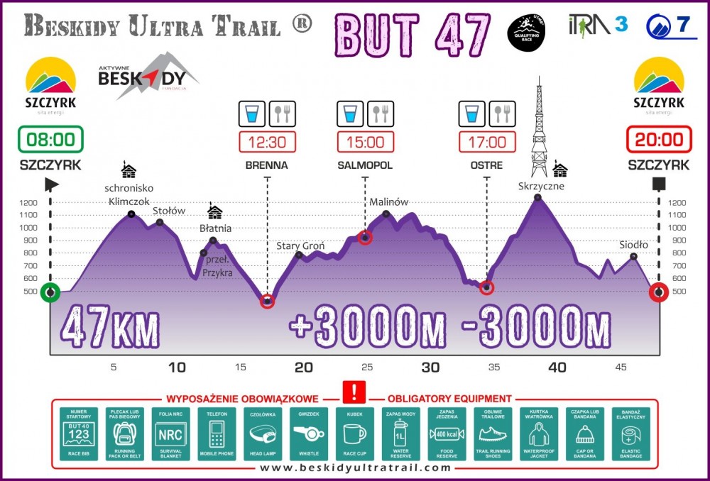 Par Beskidy Ultra Trail skrējienu. Līdz reģistrācijai biju dzirdējis par tādu Beskidy kalnu grēdu kaut kur Polijā, zināju, ka latvieši tur brauc uz MTB sacensībām (atceros, ka netrūkstot augstummetru un ir akmeņaini nobraucieni). Pasākuma mājaslapā informācija poļu valodā, mazliet angļu valodā. Ātri noorientējos distanču ēdienkartē: 10 km skrējiens, 20 km pārgājiens bez laika kontroles un ar brīvo startu, 30 km skrējiens (1700 metru kāpums), 47 km skrējiens (3000 metru kāpums), 73 km skrējiens (5000 metru kāpums), 100 km skrējiens (7300 metru kāpums), 315 km izaicinājums (vairāku diennakšu piedzīvojums skriešanas dieviem, kas nepazīst bailes un nogurumu). Lai reģistrētos, neprasa iepriekšējo pieredzi, par finišu dod ITRA punktus, dalības maksas ļoti pievilcīgas. Mazliet pieslēdzot veselo saprātu, tika nolemts savaldīties un neizvēlēties 73 km skrējienu, tā vietā startējot 47 km skrējienā. Argumentācija: esmu slinks uz gatavošanos, kalnos līdz šim arī nav skriets (tikai pauguros – 2018.gada SKM garā distance, 2019. gada CET 50 km distance).