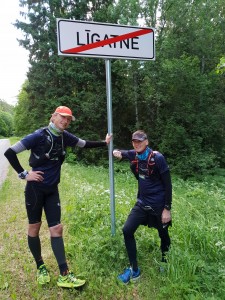 Triecot jokus, tiekam ārā no Siguldas Līgatnes virzienā. Uz šosejas ir intensīva satiksme, čaļi dalās atmiņās par klasisko „Rīga-Valmiera” skrējienu. Nogriežamies uz veco Pleskavas šoseju un sasniedzam Augšlīgatni. Pie stacijas piedzīvojam otro lietusgāzi. Matīss saplūc lillā puķes un apsveicam viņa tēti jubilejā. Mantu loģistika arī ir veiksmīgi īstenojusies – 20 minūtes pirms mūsu ierašanās mans kolēģis mūsu opeli ar nepieciešamajām mantām no Rīgas ir nogādājis Matīsa vecāku mājās. Tur tiekam aprūpēti kā karaļi – silts vistas buljons un piparmētru tēja ir tieši laikā. Īso kārtu nomainām pret garajām drēbēm, tiek lādēti garmini, telefoni un gopro, pildu sistēmas, kārtoju velosomas. Mani atkal bažīgu dara Matīss – viņš guļ koridorā uz grīdas, sacēlis kājas uz plauktiņa, neliekoties ne zinis par pārējo cilvēku kustību mājas galvenajā maģistrālē. It kā jau varējām mest mieru – esam mājās, Valmierā mūs neviens negaida, aiz loga ir slapji lietus mākoņi un priekšā nakts. Pat man bija grūti saņemties un pamest mājīgos apstākļus. Tomēr pēc stundas, īsi pirms plkst.21:00, ripinām un tipinām tālāk. Aiz muguras šobrīd 81km. Draudīgie mākoņi sāk izklīst un debesis noskaidrojas, kliedējot bažas par slapju nakti. Augšup Līgatnes centra kalnā Matīss sāk izmantot nūjas, par ko Ģirts šo velk uz zoba, kaut gan pēc pāris kilometriem pats pievienojas nūjotāju pulciņam, lai garajos kāpumos taupītu spēkus.