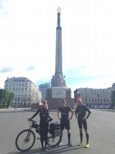 22. jūnijā plkst.9:00 dodamies ceļā no Brīvības pieminekļa. Kamēr turpat pie Mildas veicu ierakstus sociālajā vidē, Ģirts ar Matīsu jau ir gabalā. Minos pakaļ, tomēr Brīvības ielas remontdarbi, gājēju plūsma, luksofori un smagā velosoma neļauj man ļoti pārkāpt satiksmes noteikumus. Čaļus panāku vien pie VEF pils. Mācos apvienot stūrēšanu ar GoPro operatora pienākumiem. Drīz vien arī iemanos vienlaicīgi, vadot velo, bildēt un rakstīt ar savu 6,2 collu telefonu. Tas nav gudri, un neatkārtojiet to savās ikdienas gaitās. Čaļiem skrienas labi, vienīgi Matīss nedaudz sūdzas par paaugstināto pulsu, kam par iemeslu varētu būt nepietiekamais miegs un atpūta pirms skrējiena. Aiz Juglas kanāla pie arbūzu tirgotājiem abi filozofē, ka būtu forši paņemt līdzi lielo ķirbi, bet nav droši, vai es būšu sajūsmā par šo ideju – mans velo ar bagāžu kopā sver vairāk nekā 30kg un priekšā vēl 130km. Paldies par rūpēm!