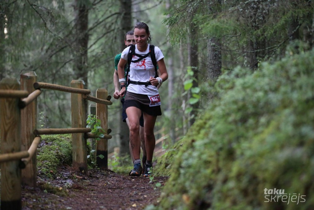 Kārļos gaidīta tikšanās, pažēlojos, cik man grūti, ka laikam pietiek, bet mani aiztriec tālāk. Skrienu un domāju, ka tik grūti nemaz vairs ar’ nav. Līdz Ozolkalnam jātiek. Izmetu lociņu un uzzinu, ka ceturtā ir lietuviete kādas 6 minūtes aiz manis. Vēl kādi 20km līdz finišam un tās 6 minūtes nav daudz. Kaut kā izdodas saņemties uz ātrākiem kilometriem pa granteni, no kaut kādiem krūmiem uzrodas Dzintars un saka, ka līdz Ozolkalnam apmēram 5 kilometri. Līdz turienei skrienam kopā.