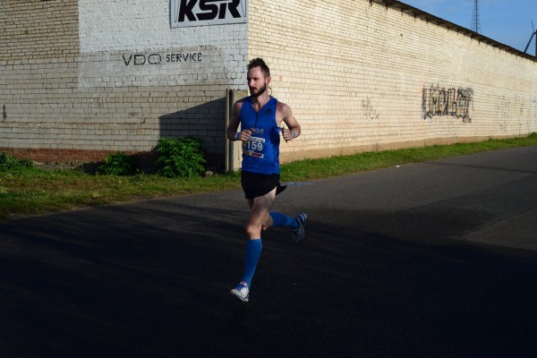 Man mamma vienmēr pēc tam prasa – nu, cik tad piedalījās, daudz? Nekad nemāku atbildēt, jo atpakaļ taču neskatos. Ja es startētu no beigām un visus pēc tam apdzītu, tad varētu teikt, ka jā, baigi daudz skrēja. Šoreiz gan varu teikt, ka baigi daudz neskrēja, jo drūzma sākumā bija minimāla. Ļoti labi, ka bija dalītais starts un pusmaratonisti sāka pusstundu vēlāk – citādi vēl kādam no šiem aizskrietu pakaļ. Šādi uzreiz ar pirmajiem soļiem jau izrāvos no bara un ap mani bija tikai trīs skrējēji. Viens sarkanā kreklā un divi zilos – viens bezrocī un otrs t-kreklā. Trase sākumā veda taisni pa plašu ielu un visi trīs skrēja blakus plecu pie pleca, un pļāpāja; pats biju ērti iekārtojies aiz viņu mugurām un klusām sekoju. Drīz vien garmin nozvanīja par veikto pirmo kilometru un apstiprināja manas aizdomas – 3:33min/km, kas ir krietni par ātru tam, ko būtu gatavs skriet. Ja šādi skrietu līdz galam, tad maratons būtu ap 2:30. Pagaidām gan elpošana atļāva turpināt tādā tempā un nolēmu neatpalikt no grupas – cerēju, ka veči mazliet aizrāvušies un pārķēruši startu, drīz nomierināsies. Otrais kilometrs 3:43 – tā jau labāk! Pavisam bez prognozēm gan neiztiku un pie sevis ielāgoju dažus skaitļus, piemēram 3:48min/km, kas finišā dotu apmēram 2:40. Cerēju, ka normālos apstākļos tas man būtu pa spēkam. Prieki gan bija īsi, jo trešais kilometrs tika veikts 3:31min/km – ātrākais kilometrs visā maratonā, vismaz man. Visas manas cerības uz pjedestālu un veiksmīgu sezonas noslēgumu solījās beigties jau trešajā maratona kilometrā, jo ap to brīdi skrējējs sarkanajā kreklā pateica pārējiem, ka plāno labot trases rekordu un veiksmes vēlējumu pavadīts, sāka manāmi atrauties. Pa pusei nopietni pie sevis atvadījos no uzvaras un turpināju turēties aiz vīriem zilajos kreklos. Atkal kādu brīdi tas izdevās, bet maz pamazām atstarpe starp mums palielinājās – metrs, divi, pieci metri, desmit un nu jau var teikt, ka skrēju viens pats. Pirms pirmā dzirdināšanas punkta vēl mazs cerību stars parādījās, jo t-kreklā skrienošais mazliet atpalika, taču tikai uz īsu brīdi un tālāk jau atkal pievienojās otram. Pēc kilometru splitiem arī var labi redzēt, ka sākot no piektā kilometra sāku skriet viens, savā tempā. Turpmākie četri kilometri apmēram 3:42 – temps ar kādu būtu pat ļoti apmierināts.