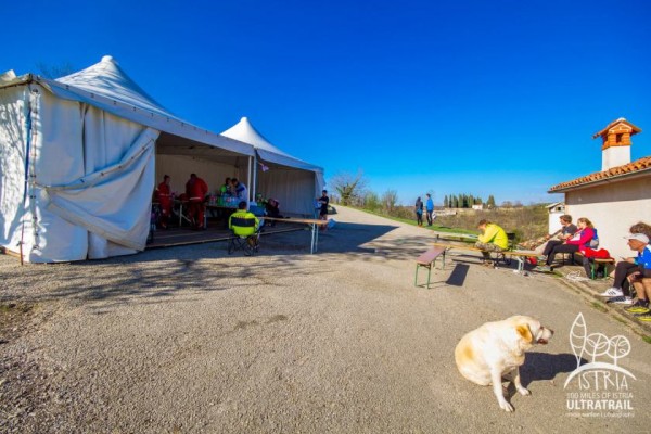 Šajā punktā pavadu daudz laika. Paēdu, padzeru, uzpildos, aizeju uz tualeti un kārtīgi izstaipos. Manu cisku spaidīšanu ar ļoti lielu interesi filmē džeks ar lielu kameru, es neiebilstu, lai jau tiek. Jūtos gatavs turpināt ceļu. Priekšā ir pāris kilometri uz leju, bet pēc tam – skrējiena brutālākais kāpums, kas beidzas Oprtalj, kas ir nākamais kontrolpunkts, kā arī laika robeža (tur jāierodas (precīzāk – no turienes jāpazūd) 8 stundu laikā kopš starta). Izrādās, ka tomēr arī virziens lejup un pa taisni man šajā brīdī ir kļuvis grūts. Trase šajā vietā ir tizla – iet pa ceļu, saule spīd no pašas augšas, paslēpties nav, kur. Brīžiem eju, brīžiem skrienu, ir grūti. Tam traucē arī celis, kurš nu jau iesāpas arvien biežāk. Kamēr eju, viss ok, bet, kā sāku skriet, sāk sāpēt. Ļoti neforši.