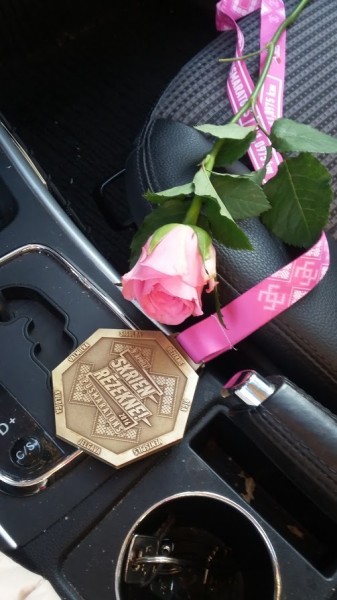 Tomēr kā ierasts startā iekārtojos netālu no TT uz divām stundām. Tomēr ilgi es viņiem “astē” nenoturējos. Sākumā nesapratu, kādēļ tik grūti skrienas. Izrādās – Rēzekne nav nekāda plakanā pilsēta. Gari un lēzeni pakalni bija jāpievar. Skrēju un apjūsmoju pilsētu – Māras piemineklis, Latgales vēstniecība “Gors”, parks, estrāde. Skrējās grūti, tādēļ priecājos, ka trešajā aplī uz brīdi ar mani kopā atsildoties paskrēja Lauma. Paldies viņai, ka neļāva man galīgi panīkt. Pēdējā aplī gan panīkstu pavisam un finišēju vienu no saviem visu laiku lēnākajiem pusmaratoniem (02:13:03). Finišā tiku sagaidīta ar ovācijām. Saņēmu medaļu un rozi no pasākuma organizatora rokām. Patīkami. Kamēr ēdu putru, estrādē skanēja kādas latgaļu grupas priekšnesums. Skaisti un baudāmi.