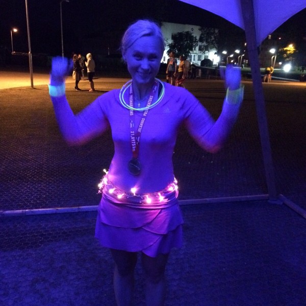 Nu ir pienākusi kārta sezonas jaunumam Zilonis Tumsā (06.06.2015), Parīzē esmu nopirkusi lukturīti speciāli šim skrējienam, pēc visām nebūšanām ar ūdeni un marķējumu pagājušā gada CET, šis pasākums tiek gaidīts visai piesardzīgi, bet lieki, ir tik forši, atmosfēra uz +10, skriešana tumsā interesanta un pirmo reizi izdodas arī nolikties garšļaukus, bet pie vainas bija Aivars703, ieraudzīju viņa spīdīgos riekstus un biju gar zemi kā likts, 28.75 km pieveicu 03:10:49 un tiku pie pjedestāla.