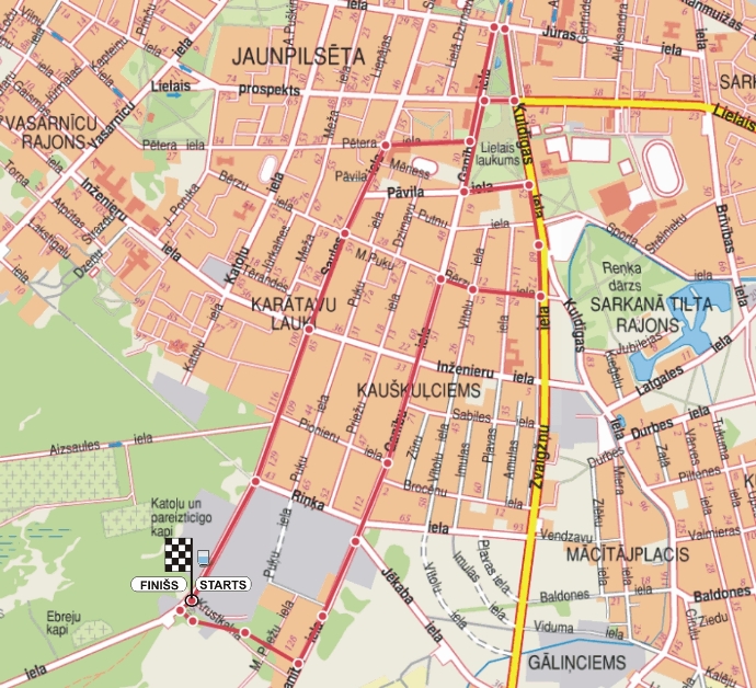 1 variants stāvvietai – pie CSDD Ganību 154. Līdz startam apm.650m.
