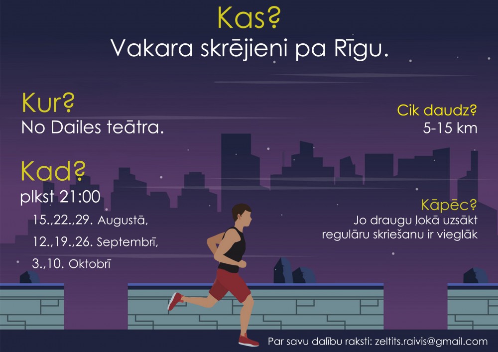 Jūsu uzmanībai šovakar – atkal sākas treniņskrējieni ar startu pie Dailes teātra!