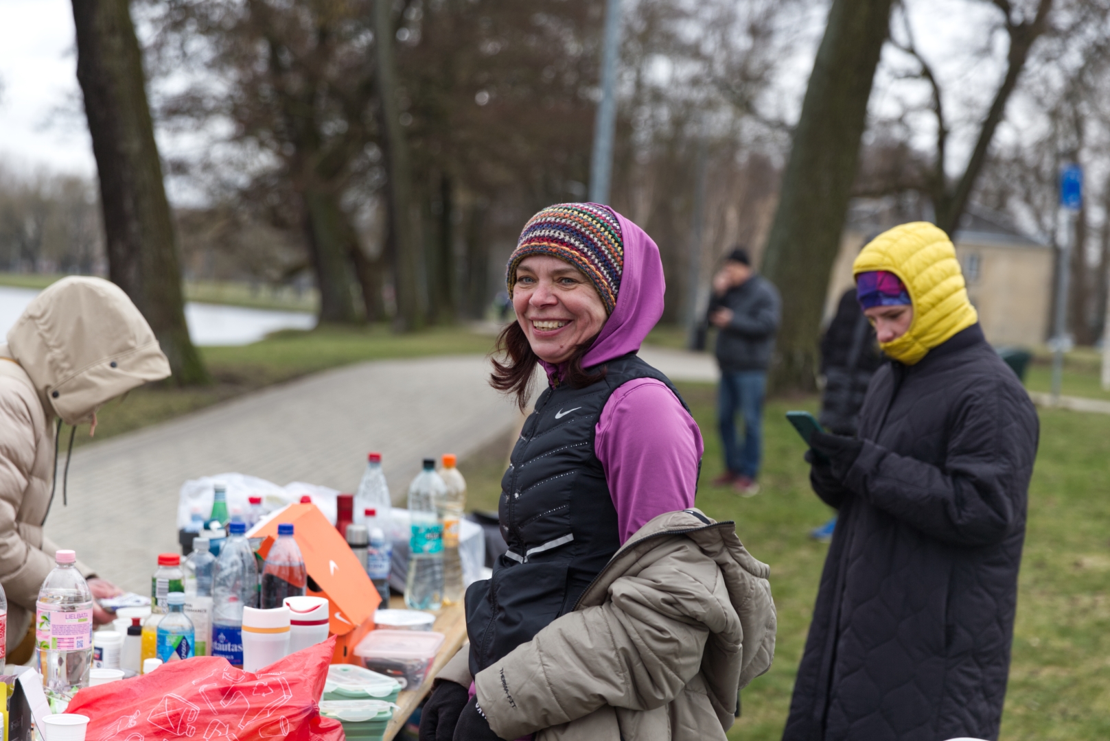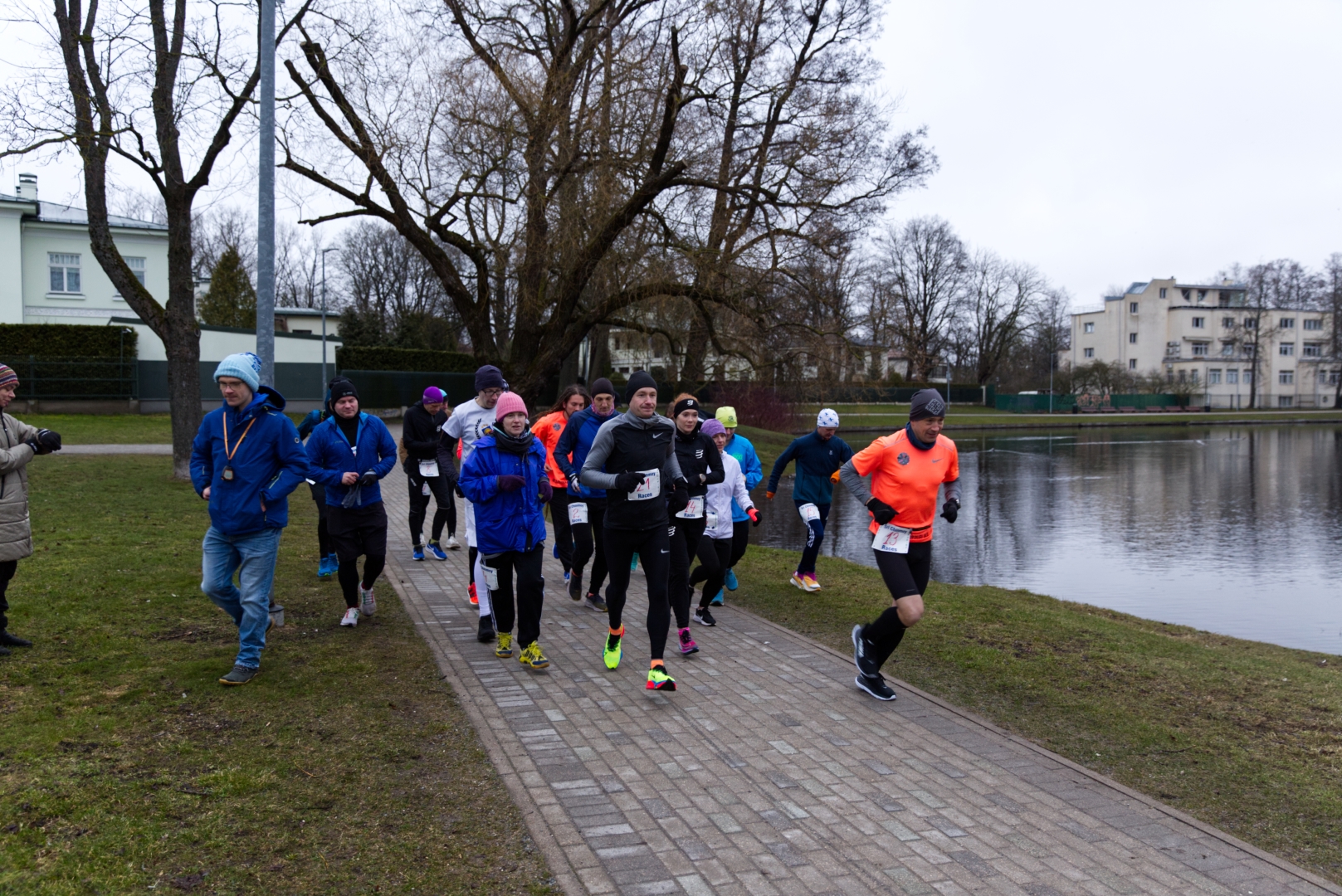 1. aprīļa rīts. Vai tas ir joks? Nē. Skrējēju bariņš tiešām riņķos 12 stundas ap Baik… Piedodiet… Māras dīķi.