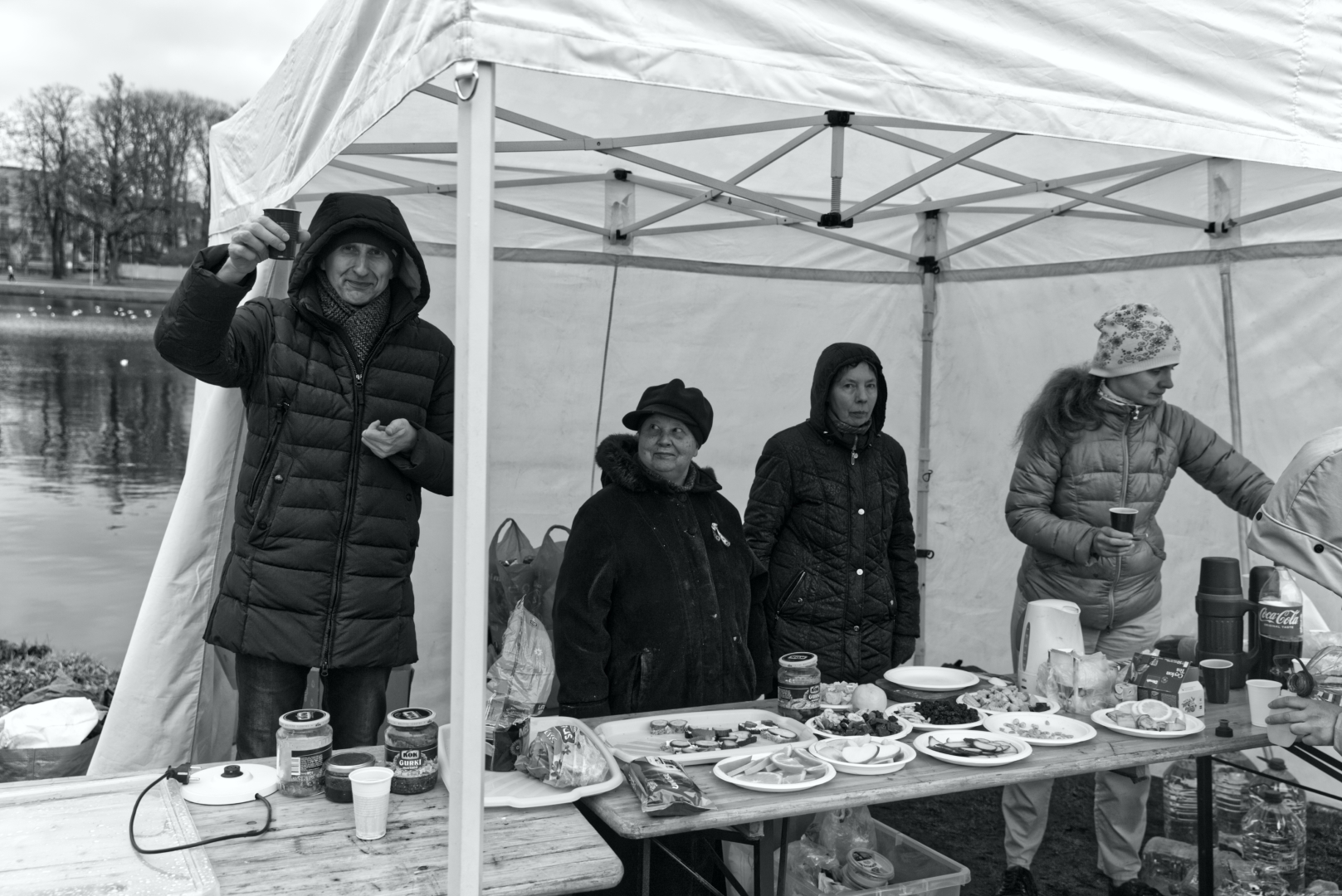 Brīvprātīgā, kas no brīva prāta visu dienu pavadīja pie Māras dīķa.