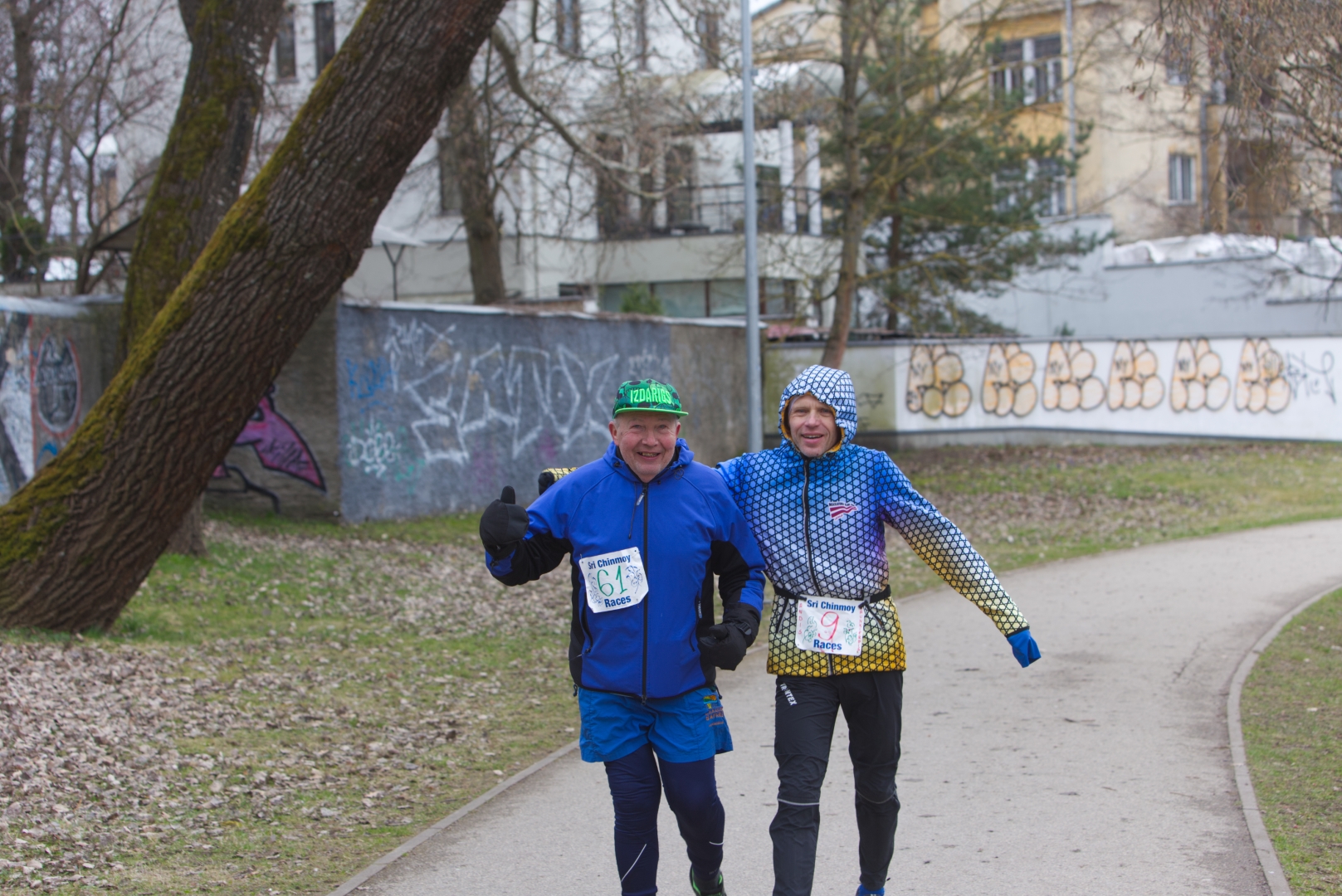 Vīru pjedestāls. Jā, divi vīri tiešām noskrēja identisku distanci.