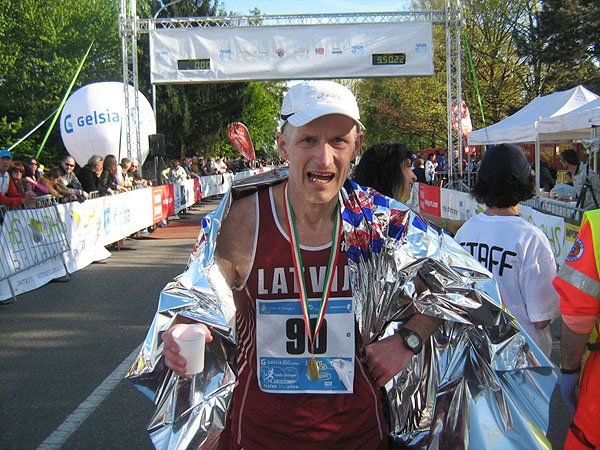 Sacensību rītā pamodāmies jau piecos ar sauli un putnu dziesmām. Brokastis un autobuss uz starta vietu. Organizācija tipiska dienvidniekiem. No autobusa mūs izlaida trīs kilometrus no starta un pat vietējie skrējēji nezināja, uz kuru pusi iet. Kad sapulcējāmies starta vietā, uzzinājām, ka starts pārcelts par 40 minūtēm vēlāk. Pirms starta kopējs foto ar Lietuvas, Igaunijas un Baltkrievijas pārstāvjiem. Es pajokoju, ka ielikšu bildi internetā ar parakstu, ka Baltkrievijas treneris prasa politisko patvērumu Baltijā. Laikam joks nebija īsti vietā, jo baltkrievu treneris pazuda momentā. Piedraudēju Krievijas veterāniem, ka dzīšu viņus ar kruķi.