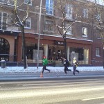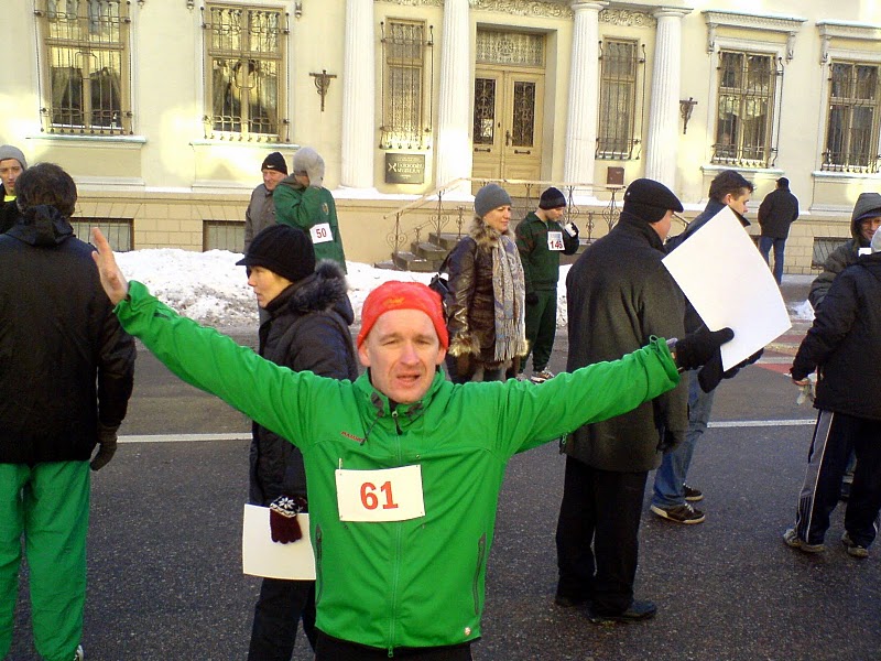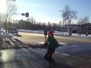 Ieradāmies 1h ātrāk pirms sākās reģistrācija. Laika posms no reģistrēšanās brīdim līdz starta šāvienam bija kā liels murgs. Pa pusei mašīnā, pa pusei ārā nācās pārģērbties, bet ārā sals -10°C un nepatīkams vējš. Mēģināju drusku paskriet, lai iesildītos – sanāca pretējs efekts, jo nosalu vēl vairāk. Nabaga deguns, rokas, kājas. Pēc starta pamazām ķermenis iestrādājās un iesila, un sāku justies arvien labāk. Distances beigās jau varēja daudzmaz normāli paskriet. Trases 7.8km veicu kā 9. ar rezultātu 28:32. Vidējais ātrums – 3:39min/km. Par šādu ātrumu esmu vairāk kā apmierināts, jo sākumā biju domājis skriet – maksimāli ja ar 4:15 – 4:00 min/km.