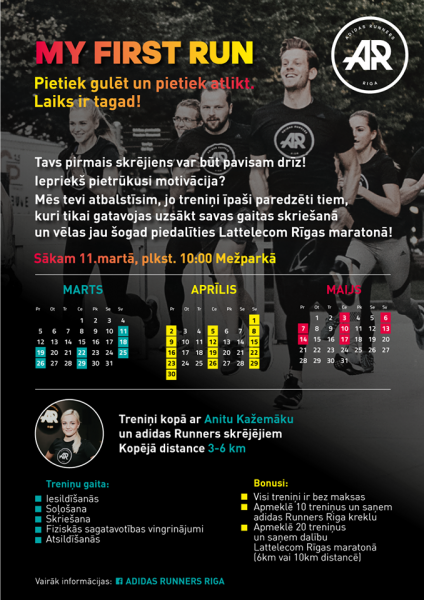 Pasaules lielākā skriešanas komūna adidas Runners Riga uzsāk pavasara treniņu programmu, kas īpaši paredzēta iesācējiem − tā veiksmīgi palīdzēs sagatavoties pirmajam skrējienam Lattelecom Rīgas maratonā!