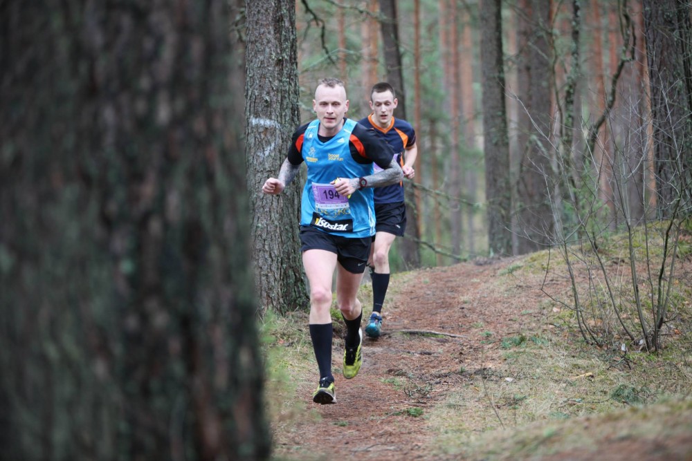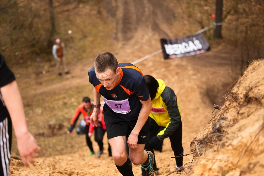 Pirmie starta metri gan ļauj iesilt vēlreiz, līdzīgi kā SKM, jābliež uzreiz kalnā. Kalns gan mazāk iespaidīgs, bet gana smilšains un izaicinošs. Tikšanā augšā dominē esošie vai bijušie orientieristi. Fonā tik dzirdu kādu šosejnieku norūcam: “Nu jā!” Diezgan ātri ieriktējos trešajā vietā, bet priekšā aiziet abu distanču nākamie uzvarētāji. Aiz muguras palikuši pārsteidzoši daudz kvalitatīvu skrējēju, kurus biju paredzējis sev redzēt priekšā, bet es… Es izbaudu mirkli.