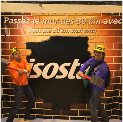 tā kā aizmirsu iegādāties pirms brauciena uz piemērošanās startu želejas, tad tās aizvietoju ar marmelādi Isostar High Energy Fruit Boost. Taču skrienot ar ātrumu 4 min/km, marmelādes apēšana prasa lielāku “akrobātiku” nekā gēli, tādēļ Parīzes maratonā plānoju izmantot distances sākumā Isostar Energy Booster Antioxidante želejas, bet uz distances beigām Isostar Long Distance+BCAA želejas (satur kofeīnu). Manuprāt, 20 g želejas katru pusstundu ir ideāls salikums. 35 g želeju lietošana, manuprāt, ir izšķērdība un lieka svara vazāšana sev līdz, jo tāpat tik daudz želejas organisms nespēs uzsūkt vienā reizē;