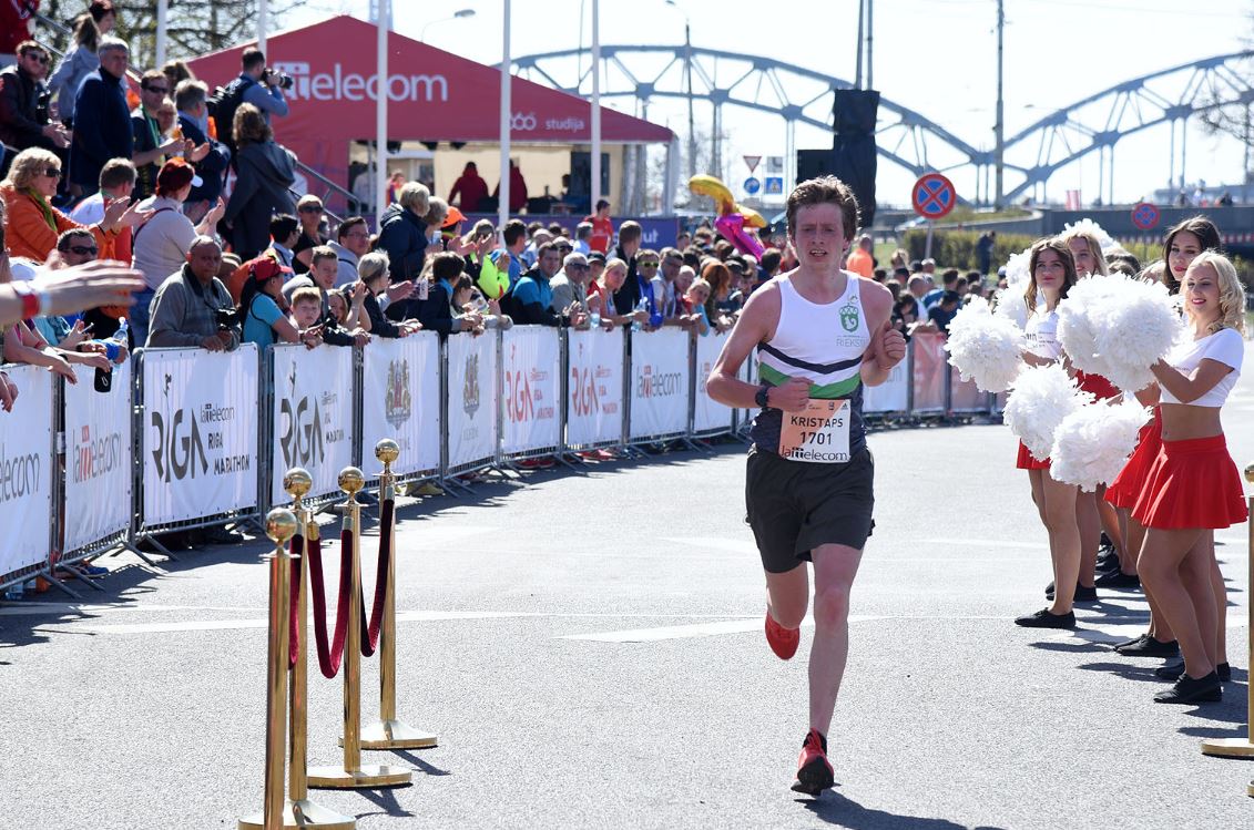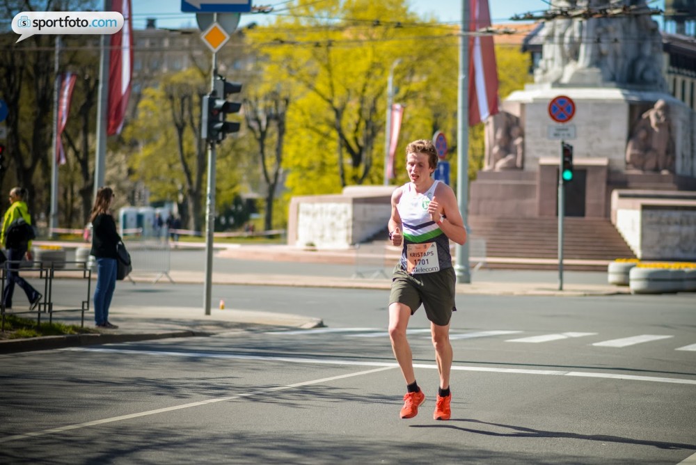 Priekšā redzu skrienam vientuļu Anatoliju Macuku, bet Džokers ir aptuveni 50m aiz manis. Tā arī šie čaļi neļauj man atslābt, jo gaidāms vienmuļais Skanstes posms. 25km pieveikti 1:28:34. Pēc pieveiktiem 25 kilometriem izdzeru savu otro želeju. Temps ir par dažām sekundēm nokrities, bet joprojām priekšā grafikam. Skanstes posmā kā jau ierasts nav nekādu atbalstītāju pūļu, tie būs jāpagaida līdz Vanšu tiltam vai vismaz Valdemāra ielai, bet pozitīvā ziņa ir tā, ka organizatori iz izvietojuši atbalsta punktus tā, ka skrienot no viena tu jau sasniedz nākamo, un tas nedaudz palīdz. Vienā no šādiem punktiem manam sekotājam sekoja frāze “Hmm kāda redzēta seja, laikam kopā tusējām pagajušo piektdien”. Nācās pārbaudīt vai mans tuvākais sekotājs joprojām ir Džokers. Džokers ir vietā, bet tas, ka dāmu līderes tur pat vien ir, nekād prieku nerada. Aizvien vairāk arī diena iesilst un tiešā saulē jau man paliek pa karstu. Bonusā tam visam aizvien vairāk sāk sāpēt ikrs, pa kuru dabūju spērienu. Atmiņā uzreiz ataust pērnais gads, kad abās kājās iemetās krampji. 30km 1:46:59, top skaidrs, ka A plāna nebūs. Uz Valdemāra ielas vismaz parādās kādi atbalstītāji. Temps ir nokrities līdz ~3:45. Fiziski gan nav grūti, bet sāpošais ikrs rada diskomfortu. Otro reizi skrienot Vantiniekā to mazo pauguru jūt pamatīgi, bet tas, ka uz tilta visu laiku kāds uzmundrina, dzen uz priekšu. Ķīpsalā jau sāku just, ka diena ir krietni vien iesilusi un sāku cepties ārā. Šis, laikam, sanāk visgarākais posms starp dzeršanas punktiem, jo šis bija vienīgais moments, kad es nevarēju sagaidīt h2o papildinājumu organismā. Jāpiebilst, ka šajā punktā ieskrēju kopā ar maratona līderēm un tas ir visai interesants skats, kā nu kurai ir atstrādāta pudeles paņemšana. Skats ir aptuveni tāds, ka tam galdam pāriet pāri tornado. Pats šajā punktā apēdu savu beidzamo želeju un cenšos iesēsties maratonistēm astē, bet īsti tas nesanāk. Sasniedzot 35. km dāmu zaķi, bez jebkādiem brīdinājumiem, vienkārši apstājās, tā, ka bija jāizvairās, lai neuzskrietu virsū. 35km pieveikti 2:05:27. Plāns B ar rezervi. Atgriežoties no Ķīpenes satieku abus Riekstu biksteniekus. Šajā duelī izskatās, ka pārāks būs Dainis, jo gandrīz ir jau noķēris Didzi (Beigās gan Didzis tika pie titula “Ātrākas bikstenieks”). Vanšu tilta apgriešanās punktā apdzenu Macuku. Kaut kur priekšā ir Kristaps Bērziņš, bet apzinos, ka nav manos spēkos viņu noķert. Līdz finišam atliek vairs tikai 5km, kurus cenšos neskriet lēnāk par 3:45. Brīdī kad ir sasniegts Brīvības piemineklis, atceros par Druupija rekordu un rupji rēķinot vel var viņu pārspēt. Kā sacīt āķis lūpā un atkal kāpinu tempu. Pašam liekas, ka skrienu gana ātri, bet garminam ir cits viedoklis. Pēc apgriešanās punkta kājas sūta nepārprotamu protesta signālu par skriešanu tempā, bet lieku viņu protestu izskatīšanu atlikt uz 10 minūtēm. Pie tet enerģijas alejas satieku abus vecākus un abiem iedodu high5. Brīvības piemineklis, Vecrīga! Palikusi tikai Vecrīga, derētu ar savām pustizlajām kājām nepakrist uz bruģa. Aaaa, beidzot ir sasniegta Krastmala un pēdējais pagrieziens. Uzdodu tempu, cik nu vēl ir atlicis, un finiš ir sasniegts. 2:32:51, kas ir jauns PB, bet līdz Riekstu rekordam pietrūkst pusminūte. Pēc mirkļa finišē arī Džokers, kuram arī jauns PB un ir puslīdz sadraudzējies ar maratonu.