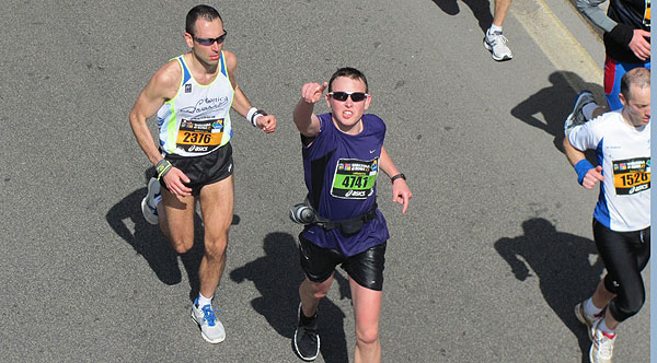 No 30km skrienu kopā ar itāli. Mūsu temps ir vienāds un turam to 4:35 min/km. Vārds pa vārdam un pēc viņa aprēķiniem finišā mums būtu jābūt ap 3 stundām un 10 minūtēm. Alberto uztur tempu un kārtīgi skrienam.