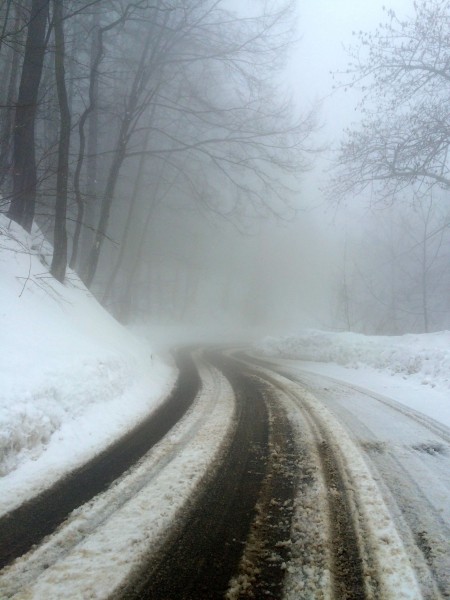Zem saulainās Toskānas saules, kur ielejā ir +8C, kur jūsmojam par kalniem un mākoņiem, kur augšup ved šaurie sepentīna ceļi ir ziema, +1C, migla, smalks lietus, sniegs un iebrauktas auto sliedes sniegotajā ceļā.
