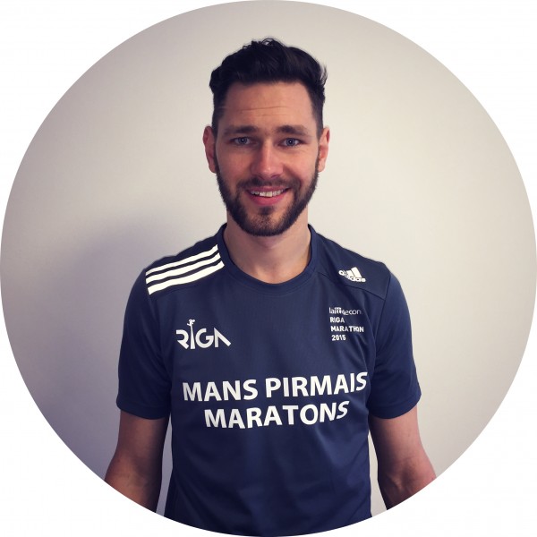 Bērnībā spēlēju basketbola komandā un regulāri trennējos, vasarās bija nometnes un bija jāskrien krosi. Jau tajā laikā man tas patika, jo apzinājos, ka tieši krosi, būs tie kas dos man izturību turpmākajā sezonā. Tā ik pa laikam pats izskrēju kādu gabaliņu vasarās. Bet pēc vidusskolas absolvēšanas regulārie basketbola treniņi beidzās, bet organismam atkarība no fiziskām aktivitātēm bija iestrādājusies pārāk liela, lai to atmestu. Turpināju ar treniņiem sporta klubos un reizēm uzskrienot. Pirmoreiz 2013. gadā noskrēju pusmaratonu. Un tad sāku kaut cik regulārāk paskriet, bet tāpat ne biežāk kā 3-5 reizes mēnesī. 2014. gadā vēl viens pusmaratons un arī gatavojoties sāku skriet ziemā un sāku vairāk domāt par to cik pareizi es to daru, vai ar pareizo pulsu, ātrumu,utt. Tuvojoties 2015. gada maratonam jau gaidīju iespēju pieteikties Mans Pirmais Maratons, lai varētu sākt skriet “pa īstam”. Ar trenera norādījumiem, uzraudzību. Un pēc pirmajām 3 nedēļām sajūta tāda, ka tagad tikai būtu sācis skriet. Jauna degsme, jaunas atziņas.