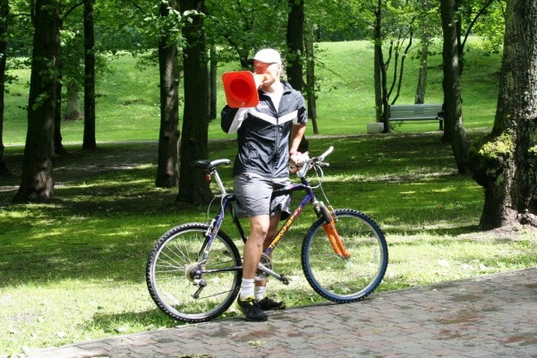 Iespējams, viens no Liepājas pusmaratona organizatoriem sr stiligo ruporu uz velo ;)