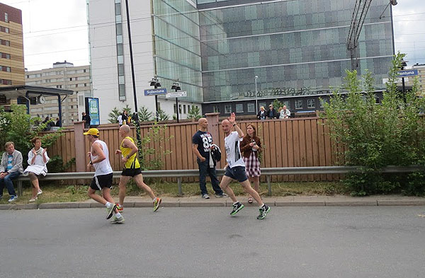 Panācu vienu somu. Arī kādu kilometru nopļāpājām. Viņam nākamais maratons Helsinkos augustā, arī viņš teica, ka tik kalnainu maratonu kā šis, viņš vēl nav skrējis.