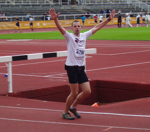 Jā, stadionā finišēt ir jauki, to vienmēr uzskatu kā plusiņu kādam maratonam. Lieliska sajūta, ka beigušies visi kāpumi, kritumi, cietais (nosacīti) asfalts… var pēdējos metrus rikšot pa absolūti līdzenu un patīkami atsperīgu virsmu, apdzenot vēl kādu… :)