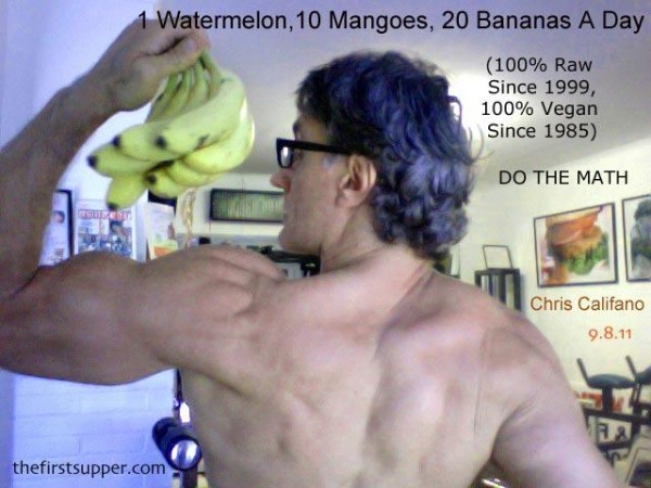 Vispirms sākšu ar pašu diētu. Fruitarianism: nezinu pat, kā tieši uz latviešu valodu iztulkot. Google translate saka: fruitarian – a person who eats only fruit. Fruitarianism diēta: tas arī faktiski to nozīmē – pārtikt pārsvarā tikai no svaigiem augļiem. Var teikt arī savadāk: vegāna-svaigēdāja diēta, kur pamatā enerģija tiek uzņemta no augļiem. Uzturā pieļaujami arī svaigi lapu salāti, atsevišķi augļu dārzeņi (gurķi, tomāti, saldie pipari, cukini), rieksti, sēklas, arī žāvēti augļi, kuru žāvēšanas procesā netiek pārsniegta 45 °C temperatūra, tomēr pamatā enerģija tiek uzņemta no augļiem. Nekas termiski apstrādāts, nekādi dzīvnieku valsts produkti, nekādu graudaugu. Diētas uzturā pamatā dominē ogļhidrāti. Klasiskā attiecība starp enerģiju, ko iegūst no ogļhidrātiem, olbaltumvielā un taukiem ir 80/10/10 vai 90/5/5. Tātad ogļhidrāti sastāda 80-90% no visām kalorijām, kas tiek uzņemtas. Striktākās diētas versijās sēklas un rieksti tiek izslēgti no uztura, un tiek pārtikts tikai no augļiem un tajos esošajām sēkliņām. Ja ir vēlme, var iet vēl dziļāk iekšā visā šajā un pārtikt tikai no savvaļas augļiem. Piemēram, banāni, kādus mēs zinām šodien, tiek selekcionēts tikai 200 gadus, bet savvaļas banāns izskatās pavisam savādāk, un tajā ir arī sēkliņas. Lielākie fanāti var paši iet iekšā džungļos un vākt savvaļas augļus. Bet, ja ar to nepietiek, tad var raut tos augļus nevis zaļus un mākslīgi nogatavināt, bet gan gaidīt, kamēr tie paši nokritīs no koka! Tā sakot, ir kur tiekties. Vēl jau ir arī tādi ekstrēmi varianti kā pārtikšana tikai no 30 banāniem dienā (aptuveni 3000kCal). Katrs pats var izspriest, cik šis ir labi un veselīgi.