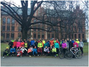 Tad nu pirmdienas rītā 8:30 esmu pie Mākslas muzeja gatava startam. Kopējā bilde un skrējiens sākas.